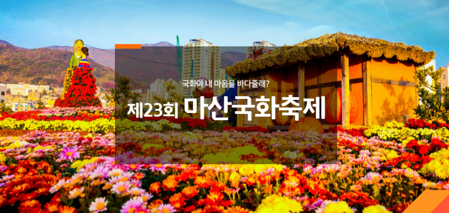 마산국화축제 기간은 2023.10.28(토)-2023.11.06(월) 10일간 열립니다. 시간은 09:00-21:00입니다.