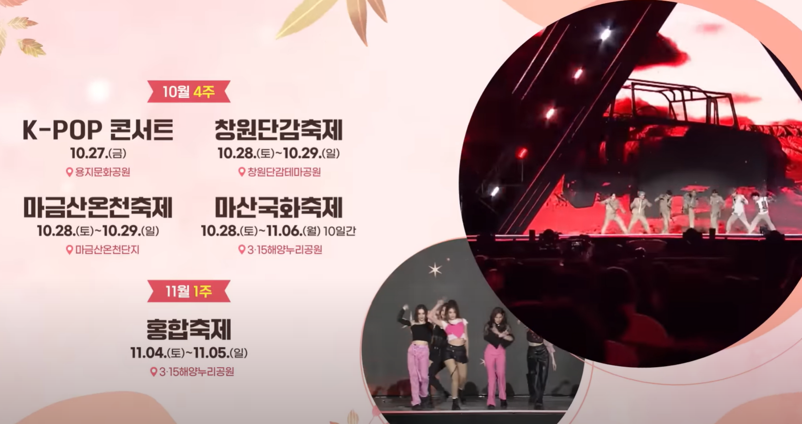 K-POP 콘서트는 10.27 금요일 용지 문화공원에서 열립니다. 이번 라인업은 온 앤 오프, 권은비, 드림캐처, 드리핀, DKZ, 시크릿넘버등 유명한 가수들이 공연이 펼쳐집니다.