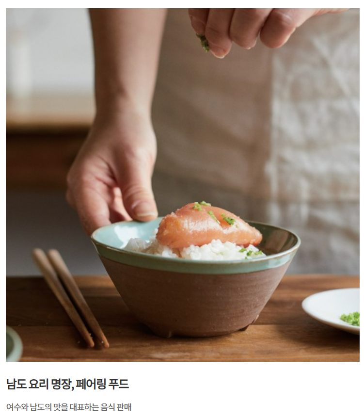 남도 요리 명장, 페어링 푸드가 판매됩니다. 여수와 남도의 맛을 대표하는 음식들이 나옵니다.
