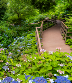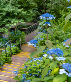 화담숲 수국원 입니다. 화담숲이 만들어 질 때 가장 먼저 만들어진 정원입니다. 60여종의 수국 종류들이 있습니다.산구국, 나무수국, 잎수국, 미국수국등 여러 종류가 서식하고 있습니다. 7만여그루의 산수국군락은 푸른 물결을 이룹니다. 수국은 땅의 성질에 따라 꽃색이 변합니다. 산성에서는 파란색, 염기성일때는 분홍색을 띕니다.