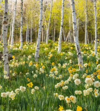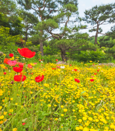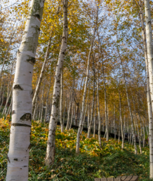 자작나무는 나무가 탈 때 자작자작 소리가 난다고 하여 붙여진 이름입니다. 또한 유명한 껌 자일리톨의 원료로 쓰이고 있습니다. 2,000 그루의 자작나무가 하얗게 이색적인 자작나무 숲 입니다. 계절마다 아름다운 꽃들이 피어납니다. 봄에는 수선화, 여름에는 푸른잎, 가을에는 보라빛 맥문동이 피어나는 곳 입니다.