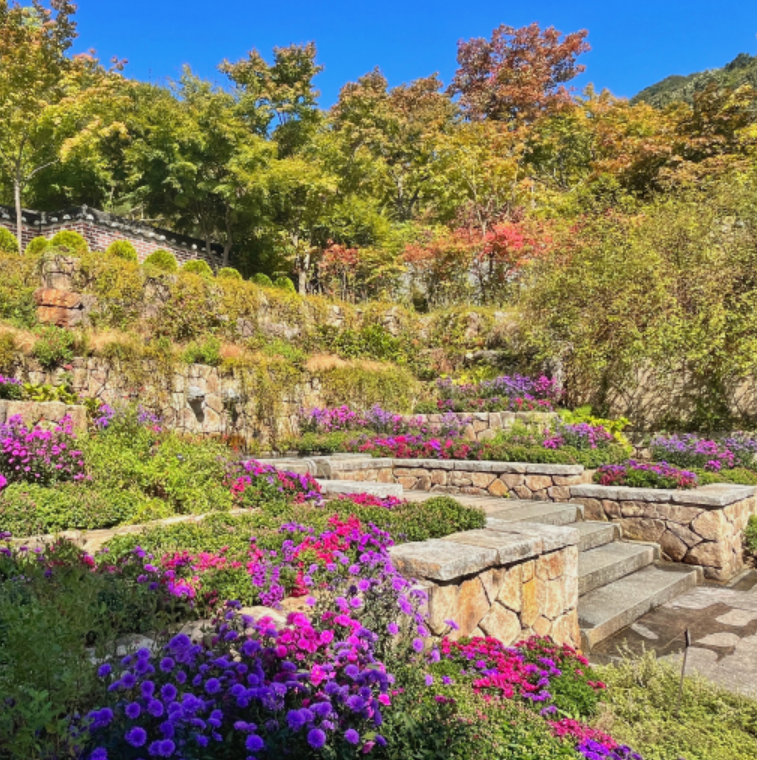 화담숲 전통담당길은 궁궐, 양반댁, 서민들의 집에서 볼수 있는 다양한 문양의 담장들과 다양한 식물들을 감상할 수 있습니다.