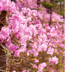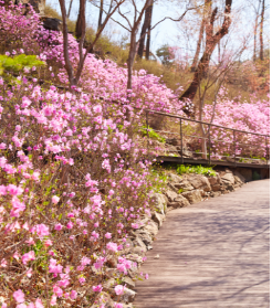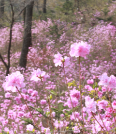 진달래 군락, 철쭉 군락으로 유명한 철쭉진달래원입니다. 화담숲의 봄을 대표하는 정원입니다. 꽃이 핀 다음 잎이 나는 진달래와는 달리 철쭉은 잎이 난 후 꽃이 피는 차이가 있습니다. 진달래는 구황식물이며 화전이나, 약술의 재료로 쓰입니다. 철쭉은 진달래와 색은 비슷하나 독성이 있어 먹을 수 없습니다.