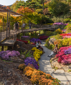 영원히 피고 지지 않는 꽃의 의미를 지니고 있는 우리나라의 상징 무궁화 입니다. 무궁화의 종류는 다양한데, 화담숲 무궁화동산에는 연암, 환희, 화랑, 화합, 소원, 난ㅍ 등 2,500여 그루의 무궁화를 볼 수 있습니다.