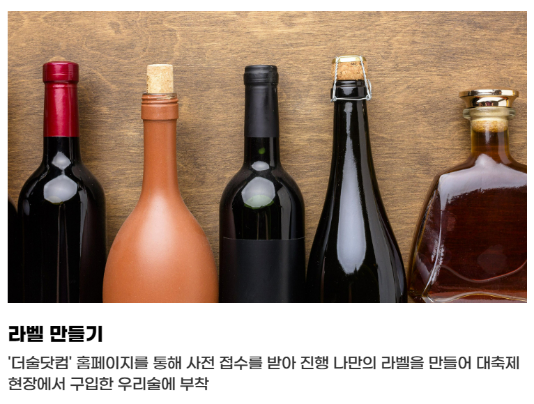 더술닷컴 홈페이지를 통해 사전 접수를 받아 진행하며 나만의 라벨을 만들어 대축제 현장에서 구입한 우리 술에 부착이 가능합니다.