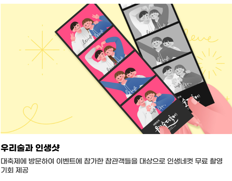 대축제에 방문하여 이벤트에 참가한 참관객들을 대상으로 인생 네 컷 무료촬영의 기회가 주어지게 됩니다.