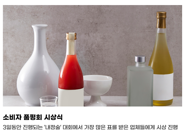 소비자 품평회 시상식은 3일 동안 진행되는 '내정술' 대회에서 가장 많은 표를 받은 업체들에게 시상이 진행이 됩니다.